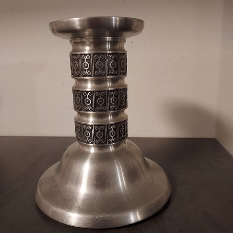 Myydään Pewter Haugrud tina kynttilänjalka. Käytönjälkiä löytyy.