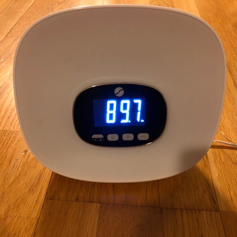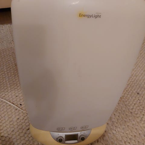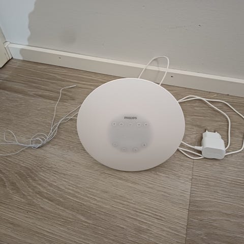 Philips Wake-up Light -herätysvalo, joka simuloi auringonnousua herättämiseen. Sisältää myös herätyskellon.