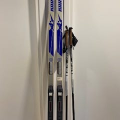 Salomon - merkkiset, hyvin palvelleet perinteisen sukset. Käytön jälkeä on pohjissa. Monot lämpimät. Sukset ovat n. 188cm pitkät ja monojen koko 40 2/3.