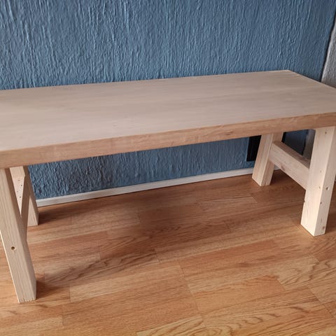 Myynnissä olis kuvassa oleva puinen penkki tukevat a-jalat.