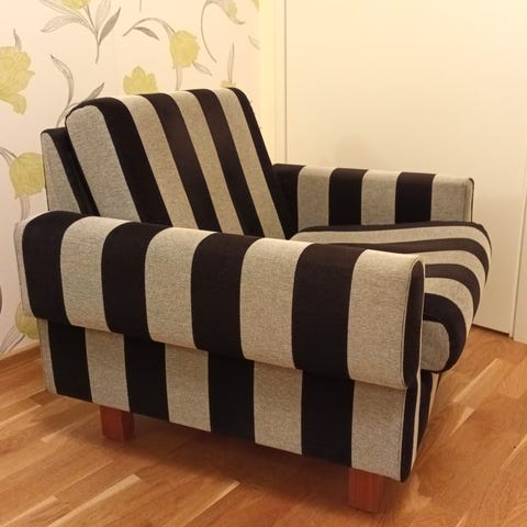 Myydään kaksi hyväkuntoista ja tyylikästä lepotuolia. Nämä tuolit ovat tunnettuja istuinmukavuudestaan: niissä on korkea selkänoja, siirrettävä niskatuki ja tukevat puiset käsinojat, joista on helppo nousta ylös.