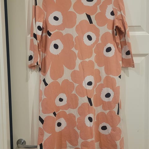 Marimekko unikkomekko kokoa S. Reilu mitoitus menee hyvin M-kokoiselle. Vyö. Venyvä kangas. Pieni tahra edessä;lähes huomaamaton. Upea seuraavalle!