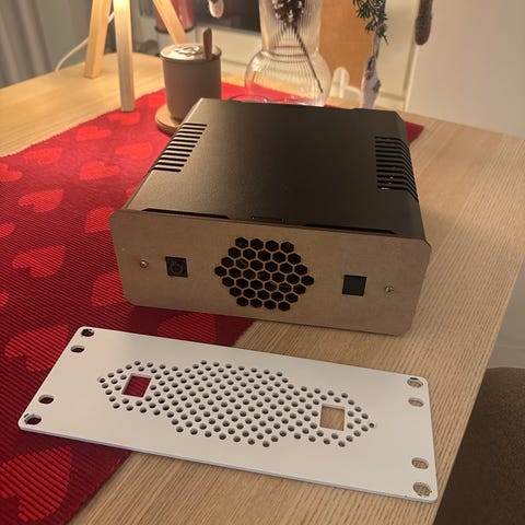 Myydään siistikuntoinen Mini-ITX -kotelo kahdella tuulettimella.
