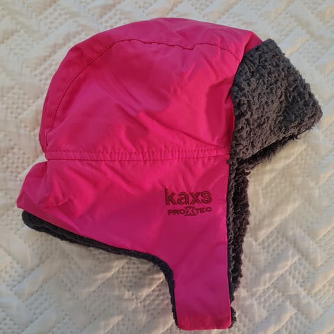 Myyntiin lämmin ja siisti Lennen pinkki-valkoinen toppahattu kokoa 54 cm.