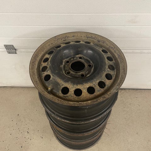 Päälle sopii esim. 2055/55-15 renkaat. Päällä olevat renkaat on aivan loppu (kudokset näkyvissä).