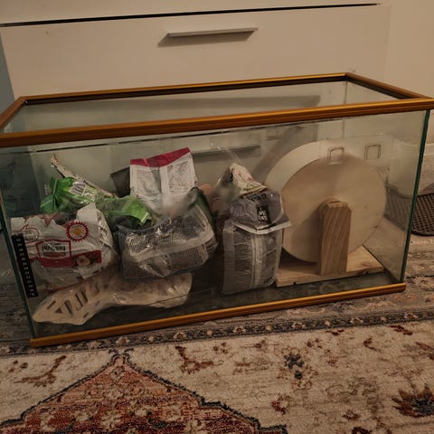 Hamsterille lasinen terraario. Terraarion mukaan saa vesipullon, ruokakupin ja vesipullon. Kysy lisää!