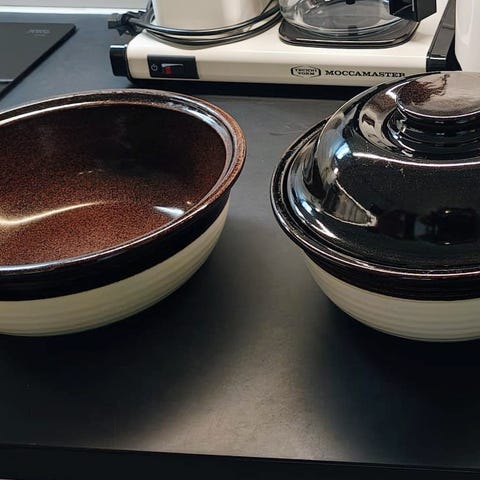 Myynnissä Kermansaven uunivuoka, halkaisija 21cm. Jotakin pientä käytönjälkeä, mikä on huomioitu hinnassa.