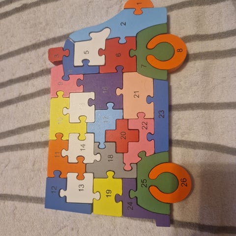Jonkun verran kulumaa on, mutta toimiva palapeli pienille edelleen.