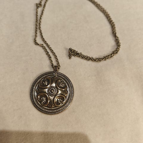 Myydään pronssinen KALEVALA KORUn Räisälän riipus. Mukaan saa ketjun, joka kaipaa puhdistusta.
