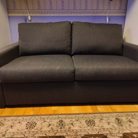 Myydään hyväkuntoinen harmaa vuodesohva. Divaanissa kivasti säilytystilaa. Mitat 235 x 170 cm. Mukaan tulee 120 cm hyväkuntoinen petauspatja, mikä sopinut sohvan kanssa hyvin.