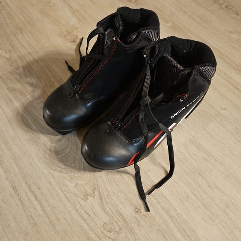 Salomon Classic hiihtomono, koko 36 2/3 (pohjallinen n. 24cm), sauvat noin 103cm, Peltonen -sukset 140cm, vähän repsottaa kulmat. Oikein passelit kuitenkin esim kouluhiihtoon! Nouto
