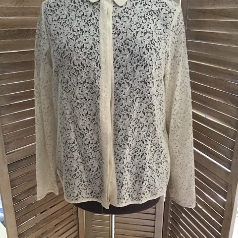 Vila pusero naisille, koko 42. Pusero on mustan värinen, mm. puuvillasta. Siinä on pitsimäinen kuviointi ja pitkät hihat. Kaunis rypytetty helma. Uusi, käyttämätön.