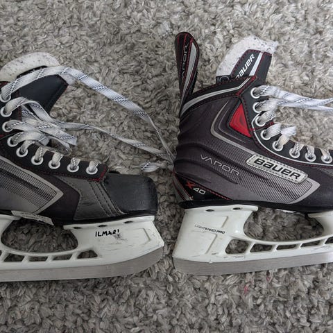 Bauerin hokkarit, koko noin 40. Tarkan koon määrittäminen vaikeaa, mutta ulkopuolella lukee koko 8. Sisämitta raksamitalla mitattuna aika lailla 26 cm. Kunto käytetty, terät tuntuvat varsin teräviltä vaikka erityisesti sivusta ovat ottaneet väriä. Vain nouto.
