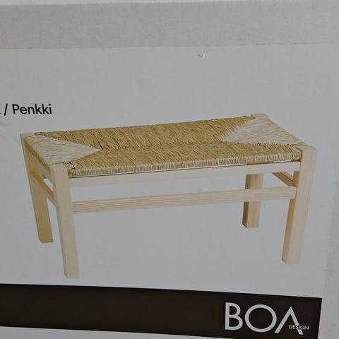 Kuvien mukainen valkoinen penkki, kolmella ruskealla korilla. Vähäisiä käytön jälkiä on (maalaamalla saa uuden veroiseksi). Säilytetty sisätiloissa, koiratalous.