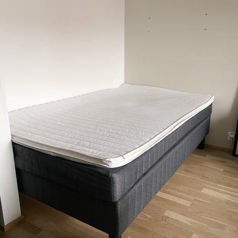 Myydään muuton tieltä Askosta ostettu 120cm jenkkisänky harmaalla verhoilulla sekä petauspatjalla. Sänky on hyvässä kunnossa, siisti ja puhdas! Sängyn keskipalkkia tuettu reikälevyllä, sillä puussa havaittu pieni halkeama (kts. viimeiset kuvat). Ei vaikuta käyttöön ja kestää hyvin! Puisissa sängynjaloissa pieniä naarmuja.