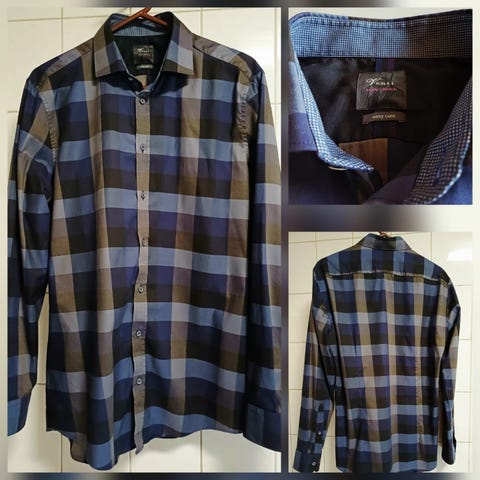 Siisti kauluspaita. Kauluksessa tyylikäs musta koristereuna. Kokomerkintä 40, 15 3/4. Ollut vähällä käytöllä.