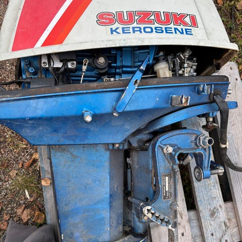 Toimiva perämoottori. Seisonut tallissa pitkään käyttämättömänä.