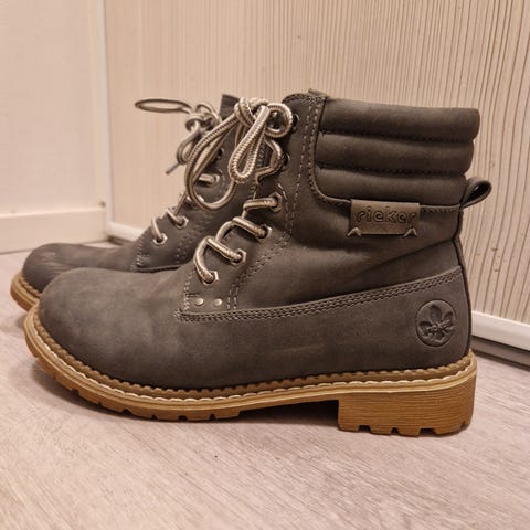 Myydään Riekerin talvikengät koossa 36. Vetoketju sivulla. Vasemman kengän kärjessä normaalia kulumaa, muuten hyväkuntoiset.