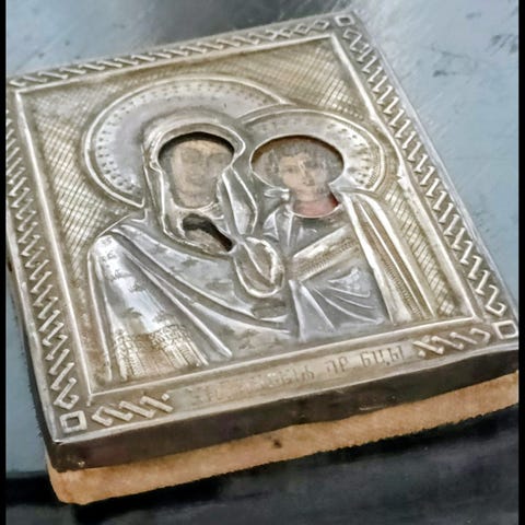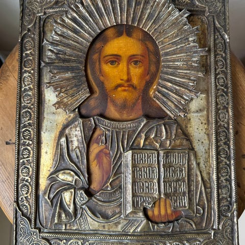 Ikoni, Kristus Pantokrator hopeariisalla, avattava matkaikoni.