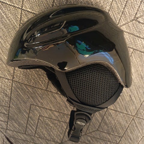 Musta laskettelukypärä 51-54cm päähän.Siisti ja ehjä.Sivussa itse liimattu tarra.