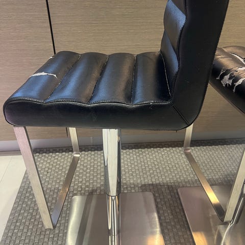 3 kpl käytännöllinen baarituoli, jossa on 360° pyörivä istuin, helppo korkeudensäätö ja tukeva metallirunko. Keinonahkaverhoilu on helppo pitää puhtaana. Sopii erinomaisesti saarekkeelle tai baaripöydän ääreen. Istuimen alla olevasta vivusta säädät korkeuden 63–84 cm välillä. Jakkaroissa hiukan kulumisen jälkiä. Hinta yhteensä 3kpl.