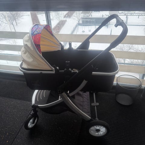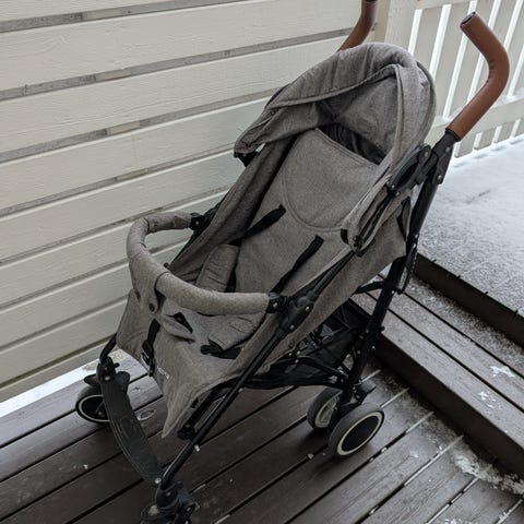 Vanhat mutta erittäin käytännölliset ja ehjät lasten rattaat kahdelle lapselle.