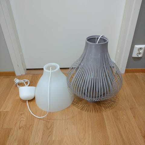 Myydään valaisin, missä roikkuu keltaisesta kukasta 6 perhosta. 1 max 40W lamppu. Vain haku.