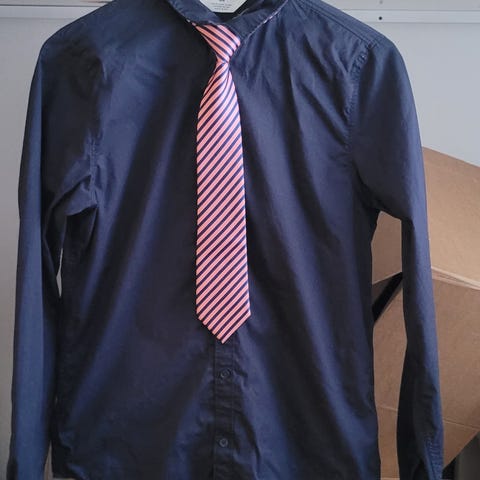 Kerran käytetty tumman sininen H&M kauluspaita ja kravatti (tarranauha takana).