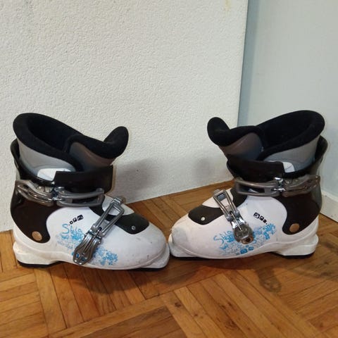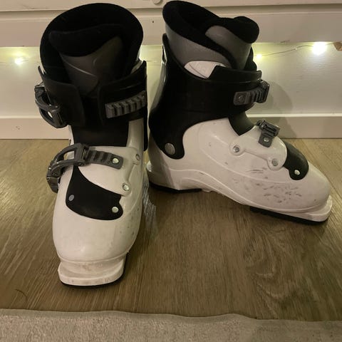 Salomon lasten laskettelumonot kokoa 20/247 Monot on varustettu kahdella säädettävällä soljella ja pehmeällä vuorella. Käytetty, mutta hyvä kunto. Väri valko/tumma luumu
