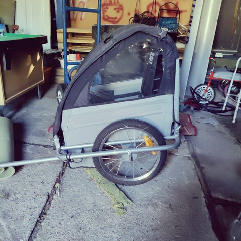 1-2 lapselle sopiva kärry. Vaihtuu kätevästi myös työnnettäväksi vaunuksi. Toinen kangasverkkosuoja ja toinen sadesuoja. Sivuilla ja edessä ikkunat.