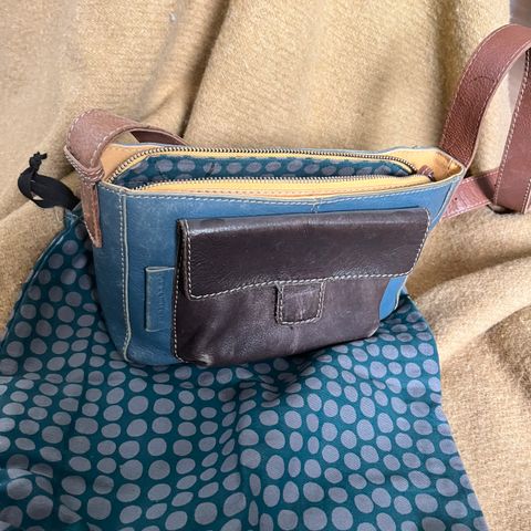 Punainen olkalaukku, nahkaa