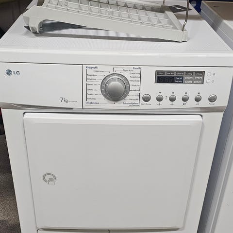 AEG Lavatherm kondensoiva kuivausrumpu, kapasiteetti 6 kg. On jo ikää mutta tähän asti toiminut hyvin ja kuivausteho on tosi hyvä - tosin energiatehokkuus iän mukainen :) Siistinä pidetty.