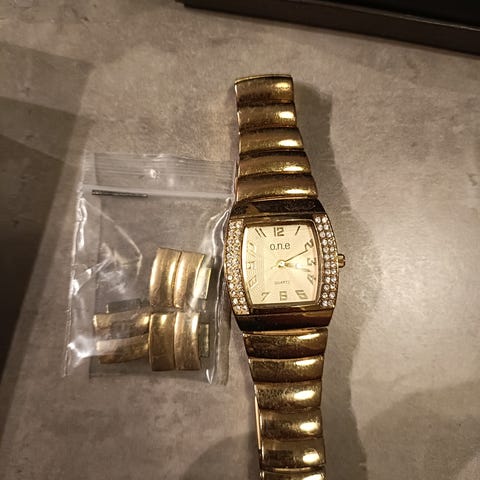 Naisten Esprit merkkinen korukello. Vaatii uuden pariston. Rannekkeen pituus 15.5 cm.