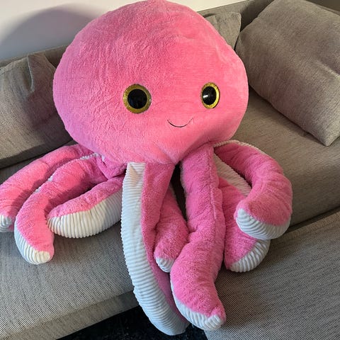 Käännettävä pehmolelu mustekala vaaleanpunainen ja turkoosi