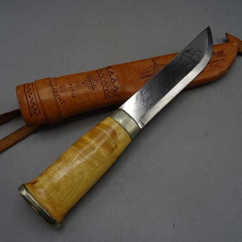 Puukko on alkuperäinen ja ajan patinalla, ei puhdistettu tai kiillotettu.