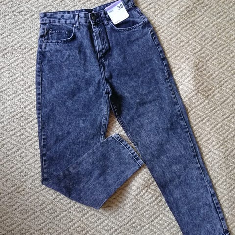 Täältä ostetut farkut, jotka eivät tulleet itselle käyttöön. Koko on 38 ja merkki Shein. Materiaali enimmäkseen puuvillaa.