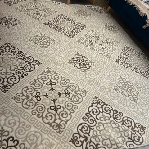 Maton leveys 110 cm ja pituus 235 cm. Toinen matto 10 cm pidempi.