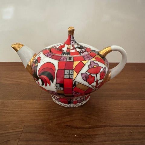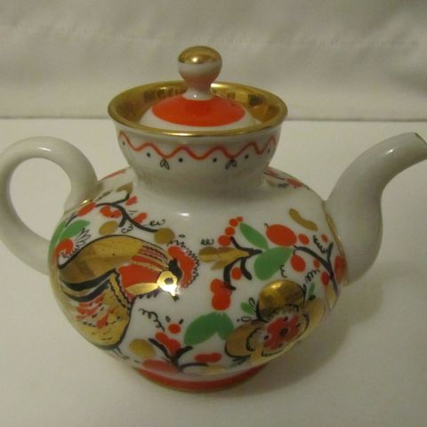 Moitteeton Lomonosovin teekannu kultakoristeilla. K13cm, L8cm.
