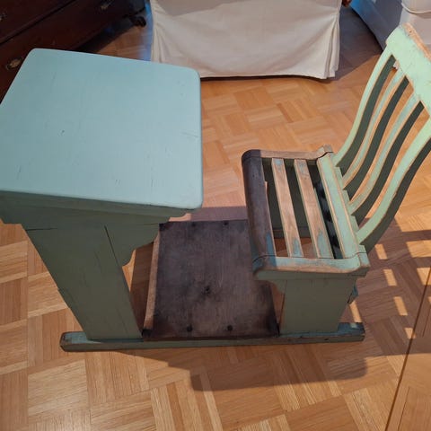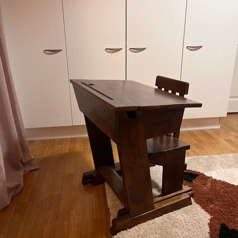Vanha pulpetti, joka nyt käynyt ko alakouluaan käyvälle koululaiselle pieneksi ja tarpeettomaksi.