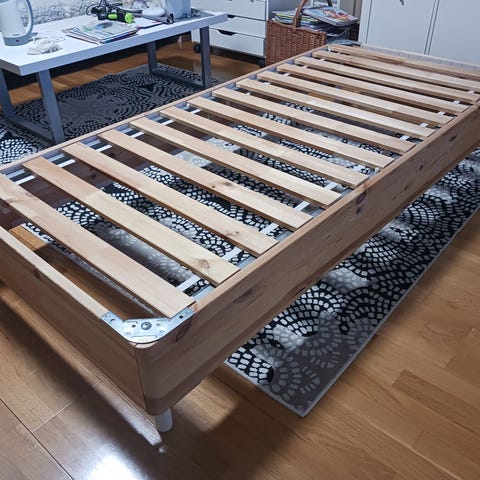 Ikean sängyt, jossa on valkoinen runko ja säilytystilaa. Näitä siis 2kpl yhden hinta 20kpl