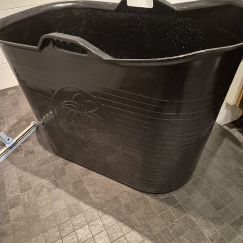 Valkoinen valurautainen kylpyamme. Raskasta tekoa. Mitat 70x150, korkeus 57cm