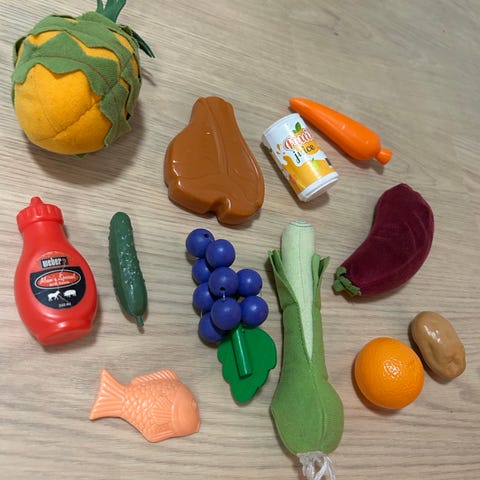 Puisia ruokaleluja. Kakusta puuttuu numero 2.