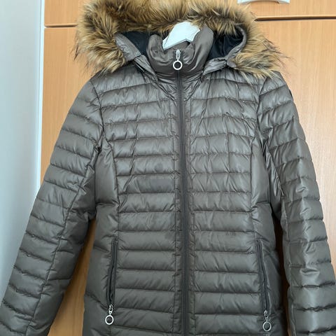 Myydään hyväkuntoinen puolipitkä naisten vaaleanpunainen/ vaalea roosa kevyttoppatakki koko 40.