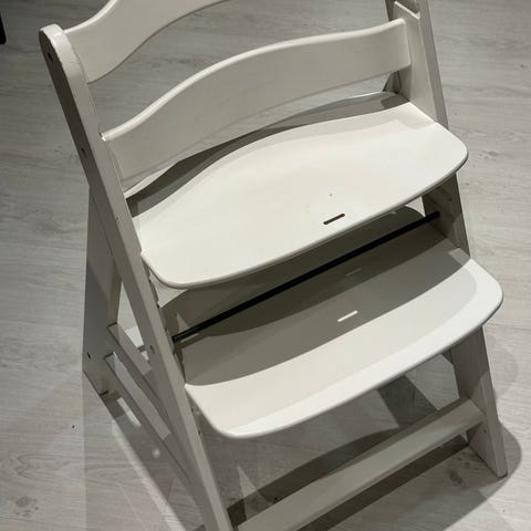 Syöttötuoli tai juniorituoli. Väri roosa tai vaalea pinkki. Maalipinnassa jonkin verran kulumia, mutta pääosin ne huomaa vasta läheltä. Istuinkorkeus säädettävissä. Mukaan irrotettava tarjotin. Turvavaljaat tallessa.