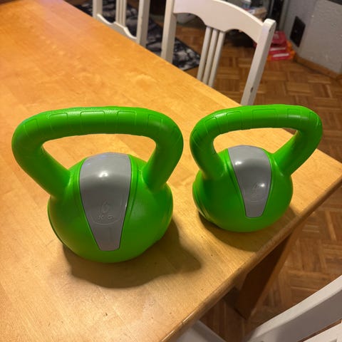 Valikoima kahvakuulia eri painoilla ja väreillä. Kahvakuulat soveltuvat monipuoliseen harjoitteluun ja kuntosaliharjoituksiin. 2e/kg.