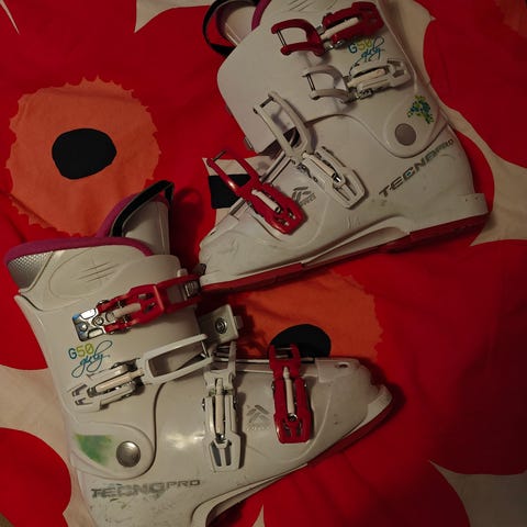 Head merkkiset laskettelumonot koko 260-265 (kengän koossa 41-42). Käytön jälkiä löytyy monojen kyljistä, monoilla on ikää +10vuotta. Siteet ovat kunnossa ja kiristystarra pitää. Sisus pehmusteet myös kunnossa. Monoja on säilytetty kylmässä varastossa.