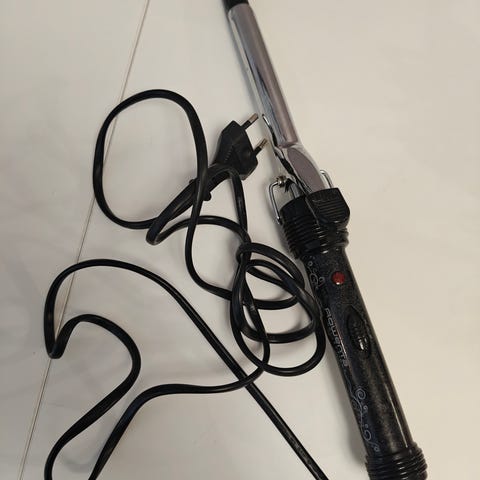 Toimiva, tuskin viittä kertaa käytetty kiharrin. Joitakin hienonhienoja naarmuja tms. metalliosissa, mutta niitä tuskin huomaa ainakaan näin aikuisnäöllä.