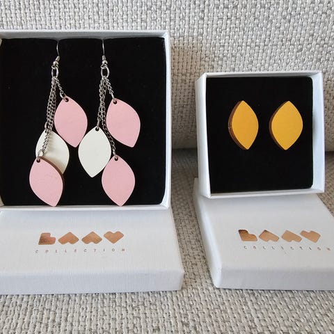 HERKKU -korvakorujen puuosat on valmistettu suomalaisesta koivuvanerista.