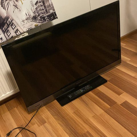 Sony televisio mustalla värillä. Kuvassa televisio ja kaukosäädin.