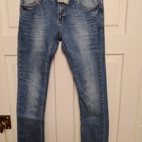Myydään itse lyhennetyt (ks kuva ompeleista) me&i farkut. Lahkeen sisäpituus noin 74cm.